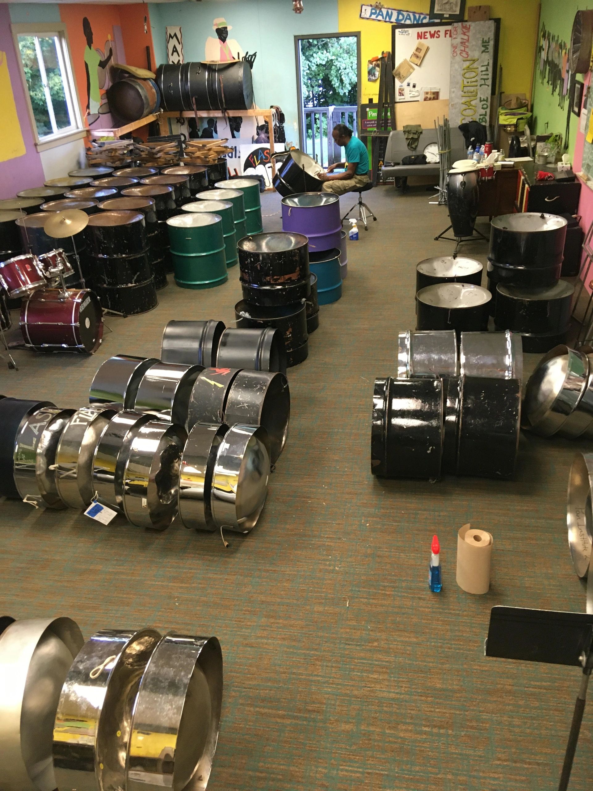 Nigel Chase is carrying on the company, Maine Pan Productions, started by Carl Chase in 1974. Roland Harrigan came to Maine in 1987 from Trinidad to teach Carl the art of making pans and since returns to help Nigel and support Maine Pan Productions here in Brooksville, Maine.